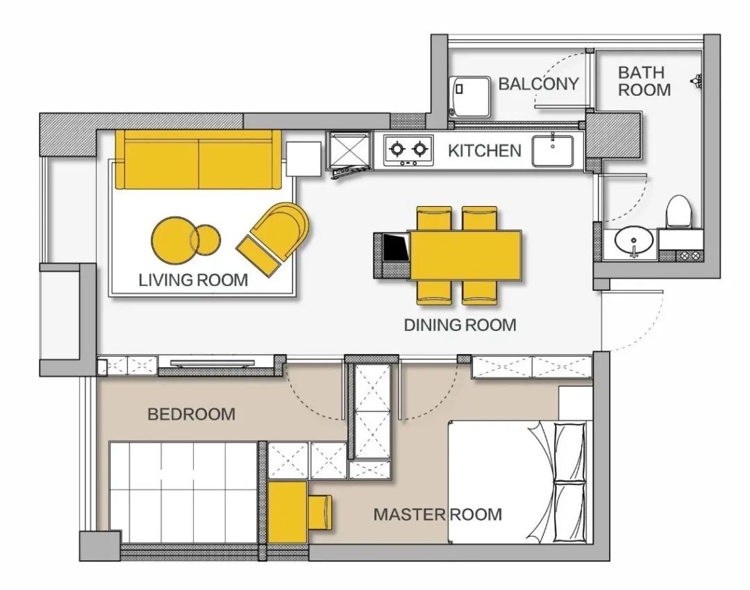 ▲ 因为原客厅无自然采光,所以设计师将原主卧室区域改为客厅,从而提高整个公共区域的采光度。